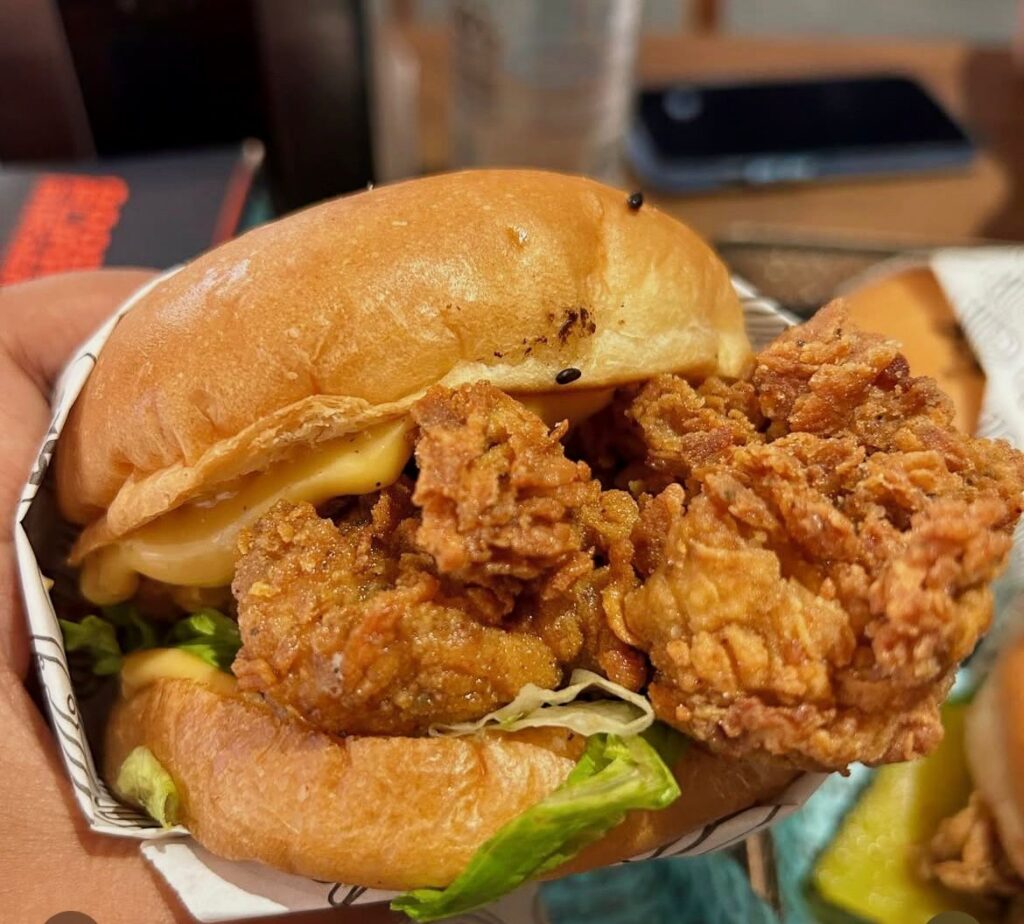 The Cluckinator nails crispiness, juiciness, and seasoning, while Jimis chicken burger leans more toward a heavy, greasy bite.